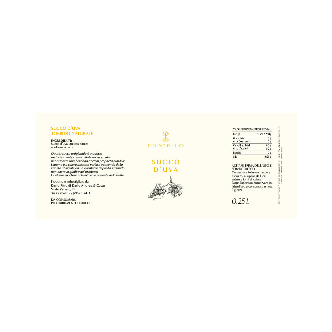 Artisanal grape juice made from carefully selected Italian grapes.
