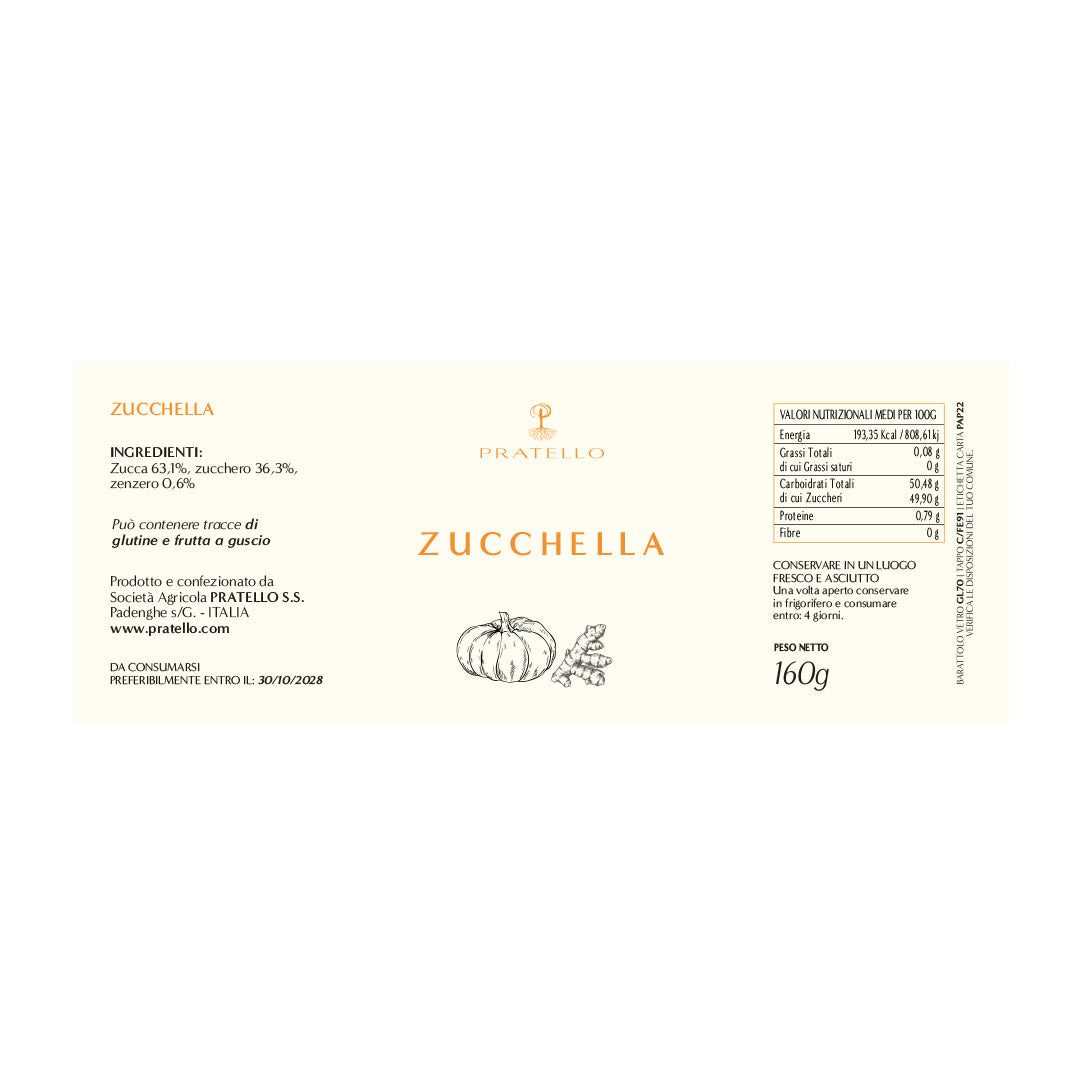 Zucchella artigianale dal gusto dolce e leggermente speziato, realizzata con zucca selezionata e zenzero.